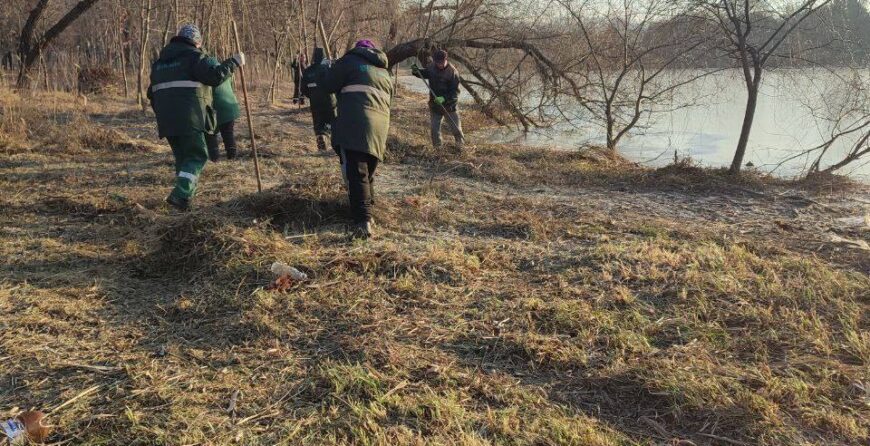 MALURILE LACULUI DIN PARCUL LA IZVOR SUNT CURĂȚATE DE STUF