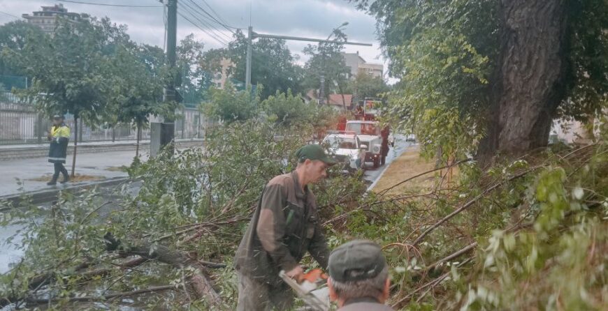 Încă de la primele ore ale dimineții, echipele de intervenție ale Secției defrișări și curățări arbori din cadrul Î.M. AGSV, intervin și vor continua să intervină pentru înlăturarea consecințelor vântului puternic și a ploilor torențiale care au avariat arbori și au făcut posibilă căderea crengilor.