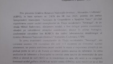 LA RĂDĂCINA ARBORILOR DE TUIA DE PE STRADA M.SADOVEANU S-A CONSTATAT MONOXID DE AZOT ȘI DIOXID DE SULF Laboratorul dendrologic al Grădinii Botanice Naționale (Institut) “ Alexandru Ciubotaru ” a…