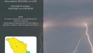 Î.M. AGSV ATENȚIONEAZĂ LOCUITORII ȘI CONDUCĂTORII AUTO DESPRE INSTAURAREA CODULUI GALBEN DE VÂNT Serviciul Hidrometeorologic de Stat informează că la data de 22 mai 2025 în intervalul orelor 15.30 –…