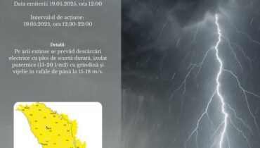 Î.M. AGSV ATENȚIONEAZĂ LOCUITORII ȘI CONDUCĂTORII AUTO DESPRE INSTAURAREA CODULUI GALBEN DE VÂNT Serviciul Hidrometeorologic de Stat informează că la data de 19 mai 2025 în intervalul orelor 12.30 –…