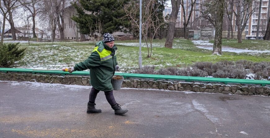 În parcuri, grădini publice și scuaruri, s-a acționat atât manual, cât și mecanizat, pentru combaterea poleiului pentru a preveni alunecarea trecătorilor și evitarea unor posibile traumatisme.