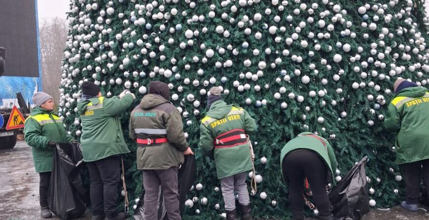 Astăzi, muncitorii întreprinderii municipale dezinstalează cele circa 10 mii de globuri de sărbătoare dar și cele 2500 de luminițe care au împodobi bradul artificial. Va urma apoi dezansamblarea carcasei metalice înalte de 20 de metri.