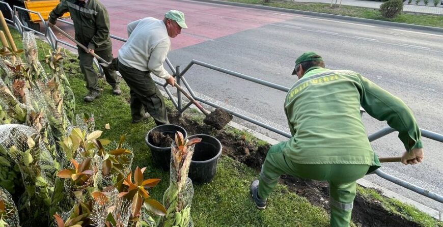 Î.M. „Asociația de Gospodărire a Spațiilor Verzi” desfășoară lucrări de plantare a gardului viu format din arbuști Photinia pe Bulevardul Mircea cel Bătrân.
