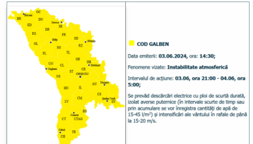 Î.M. AGSV ATRAGE REPETAT ATENȚIA LOCUITORILOR ȘI CONDUCĂTORILOR AUTO Serviciul Hidrometeorologic de Stat informează că în noaptea de 3 iunie/4 iunie 2024, în intervalul orelor 21.00 – 4.00 pe arii…