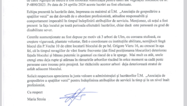 LOCATARII UNUI BLOC DE LOCUIT DIN MUNICIPIUL CHIȘINĂU ADUC MULȚUMIRI Î.M. AGSV Pe adresa Î.M. Asociația de Gospodărire a Spațiilor Verzi a sosit o scrisoare de mulțumire la adresa angajaților…