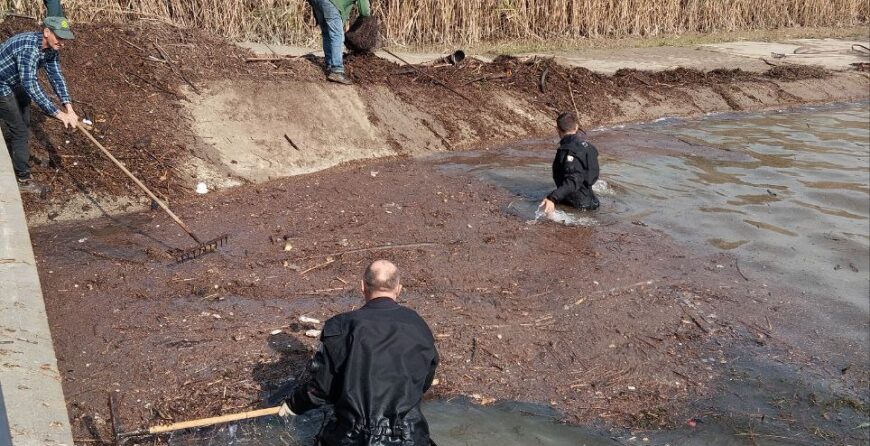 La fel, au fost colectate deșeurile vegetale aduse de viiturile de apă și au fost executate lucrări de degajare a canalelor de fugă necesare reglării debitului de apă prezente în lac.